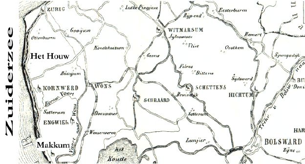 zijn bezit. Hij trok weg via Makkum naar Bolsward en woonde in de Pieter Zaalsteeg nr. 4. Dat is tussen de Kerkstraat en de Kleine Dijlakker.